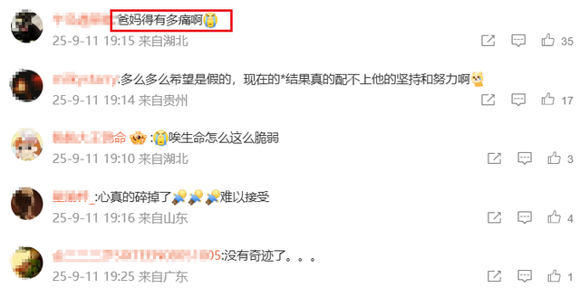 于朦胧好友及粉丝尚都是这种心情,那就更别说于朦胧父母了,简直不敢想象于朦胧父母白发人送黑发人得有多伤心。