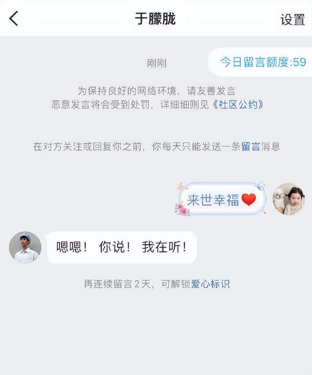 于朦胧去世后还有很多粉丝去给于朦胧留言,希望于朦胧能够来世幸福,而于朦胧设置的自动回复则是:“嗯嗯!你说!我在听!”