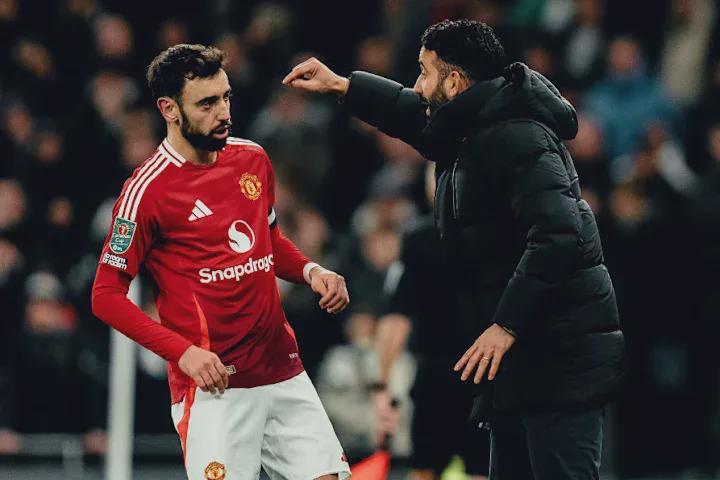 在阿莫林执教时期,B费曾被放在3-4-3阵型中踢中场后腰位置,远离进攻三区。但在葡萄牙人下课后,B费已回归自己最爱的前腰位置。上周六的曼市德比,B费表现惊艳,带领球队2-0击败曼城。他与老特拉福德的合同在2027年6月到期,并含一年续约选项,但目前未来仍充满变数。